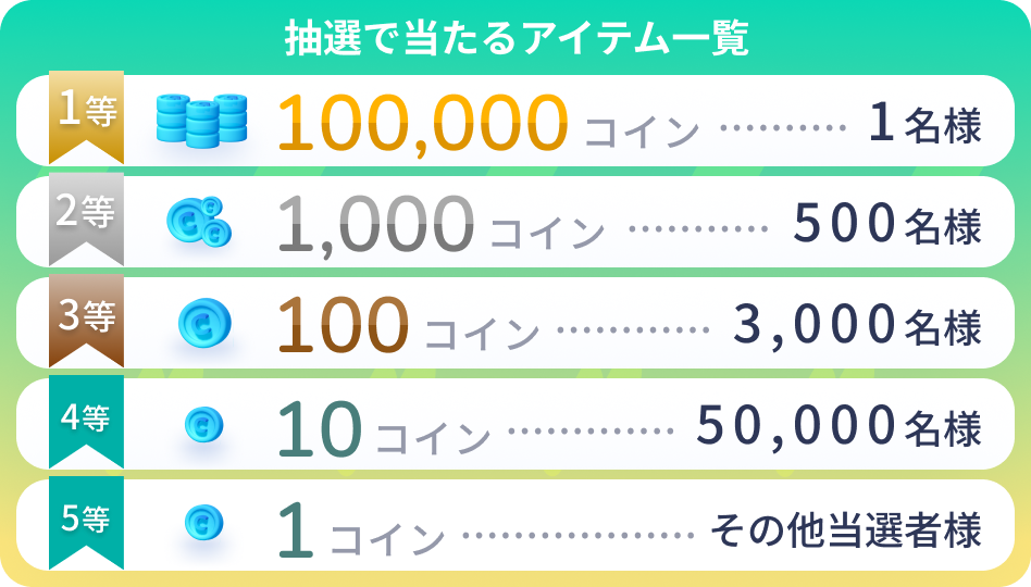 夏のがんばりにご褒美を!2人に1人、最大10万コインが当たる「アルコイン サマー抽選会」を開催 2025.07.30 歩くだけでコインがたまり、たまったコインを「PayPayポイント」や「Amazonギフトカード」などと交換することができるスマホアプリ「アルコイン」を提供する株式会社Agoop(アグープ、本社:東京都渋谷区、代表取締役社長 兼 CEO:加藤有祐)は、「アルコイン」を日頃からご利用をいただいている皆さまへの感謝を込めて、「アルコイン サマー抽選会」を2025年8月1日から開催します。暑い夏の通勤・通学や日常の移動をがんばる皆さまに、ささやかなご褒美をお届けするキャンペーンです。 App Store・Google Play共通:https://walkcoin.go.link/2mwfzアプリ紹介ページ(PCからのアクセス):https://webroad-seisaku.com/copy/appslib/walkcoin/ ■「アルコインサマー抽選会」の概要 1.内容1日4,000歩以上の達成で1口応募ができ、2人に1人、最大10万マイのコインが当たる抽選に参加できます。1日当たりの応募可能数は最大1口です。31日間の全ての期間で1日4,000歩以上を達成した場合、最大31口の応募となります。 2.参加方法アプリ内「マイページ」から確認できる「マイコード」を入力の上、以下のエントリーフォームよりお申し込みください。・エントリーフォーム:https://forms.gle/PKBQALvXRjsLtxuC9・エントリー締切2025年8月31日(日)午後11時59分まで※エントリーはお一人当たり1回限り有効です。※歩数の達成に応じて自動的に抽選会に応募されます。※アプリ上で応募口数を確認することはできません。3.当選発表当選者のみに当選結果の通知を行いますので、「マイページ」のコイン履歴をご確認ください。2025年9月第1週中にコインを付与します。4.開催期間2025年8月1日(金)〜8月31日(日) ■ 「アルコイン」について「アルコイン」は、通学や通勤、外出などの日常の移動でコインがたまり、たまったコインを「PayPayポイント」や「Amazonギフトカード」をはじめとする電子ギフト券などと交換することができるスマホアプリです。歩くだけで自動的に歩数がカウントされるため、特別な操作は必要なく、簡単にコインをためることができます。また、一日の行動履歴を記録する日記機能が付いており、歩いた道のりを振り返ることもできます。「アルコイン」のダウンロードは、こちらApp Store・Google Play共通:https://walkcoin.go.link/2mwfzアプリ紹介ページ(PCからのアクセス):https://webroad-seisaku.com/copy/appslib/walkcoin/「アルコイン」公式サイト:https://webroad-seisaku.com/copy/appslib/walkcoin/「アルコイン」公式X(旧Twitter):https://twitter.com/walk_coin ※「PayPayポイント」は出金・譲渡不可です。PayPay/PayPayカード公式ストアでも利用可能です。※Amazon、Amazon.co.jp およびそれらのロゴは Amazon.com, Inc.またはその関連会社の商標です。※このプログラムは、株式会社Agoopが提供するものです。このプログラムに関するお問い合わせは、アルコインサポート [agoop-app-support(at-mark)agoop.co.jp]へお願いします。(at-mark)を「@」に置き換えてください。※ このプレスリリースに記載されている社名および商品・サービス名は、各社の登録商標または商標です。※ このプレスリリースに記載されている情報は発表日時点のものであり、予告なく変わる可能性があります。あらかじめご了承ください。 プレスリリース一覧 前の記事 後の記事