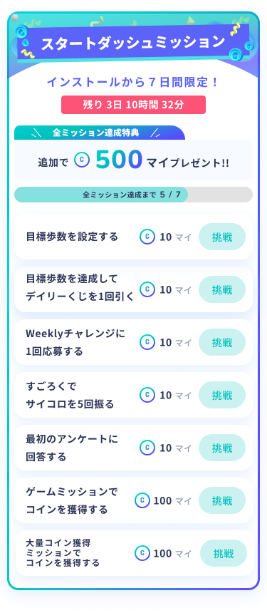 スマホアプリ「アルコイン」新規ユーザー限定「スタートダッシュミッション」を開始! インストールから7日間でコインを最大750マイ獲得可能 2025.11.19 歩くだけでコインがたまり、たまったコインを「PayPayポイント」や「Amazonギフトカード」などと交換することができるスマホアプリ「アルコイン」を提供する株式会社Agoop(アグープ、本社:東京都渋谷区、代表取締役社長 兼 CEO:加藤有祐)は、新規ユーザー限定の特別プログラム「スタートダッシュミッション」を2025年11月19日(水)から開始します。アプリを初めてインストールした方を対象に、インストールから7日間限定で挑戦できる特別企画です。 App Store・Google Play共通:https://walkcoin.go.link/1L8DNアプリ紹介ページ(PCからのアクセス):https://webroad-seisaku.com/copy/appslib/walkcoin/ ■「スタートダッシュミッション」の概要 スマホアプリ「アルコイン」を、初めてインストールした方を対象とした7日間限定の特別プログラムを導入します。「スタートダッシュミッション」は、日々の歩行やゲーム、すごろく、アンケートなどアプリ機能を楽しみながら体験し、自然な利用習慣の定着を支援する仕組みです。期間中に設定された各ミッションをクリアするごとにコインを獲得できる他、全てのミッションを達成するとボーナスコイン500マイをプレゼントします。 【参加条件】下記の条件をすべて満たしている方が対象です。・初めて「アルコイン」をインストールすること(過去に「アルコイン」のアカウントを作成したことがないこと)・アカウントの作成日が2025年11月19日(水)以降であること・「アルコイン」のバージョンが下記のいずれかであること iOS:2.49.1以上 Android:2.52.1以上 ■ 開始日2025年11月19日(水) ■ 「アルコイン」について「アルコイン」は、通学や通勤、外出などの日常の移動でコインがたまり、たまったコインを「PayPayポイント」や「Amazonギフトカード」をはじめとする電子ギフト券などと交換することができるスマホアプリです。歩くだけで自動的に歩数がカウントされるため、特別な操作は必要なく、簡単にコインをためることができます。また、一日の行動履歴を記録する日記機能が付いており、歩いた道のりを振り返ることもできます。「アルコイン」のダウンロードは、こちらApp Store・Google Play共通:https://walkcoin.go.link/1L8DNアプリ紹介ページ(PCからのアクセス):https://webroad-seisaku.com/copy/appslib/walkcoin/「アルコイン」公式サイト:https://webroad-seisaku.com/copy/appslib/walkcoin/「アルコイン」公式X(旧Twitter):https://x.com/walk_coin ※「PayPayポイント」は出金・譲渡不可です。PayPay/PayPayカード公式ストアでも利用可能です。※Amazon、Amazon.co.jp およびそれらのロゴは Amazon.com, Inc.またはその関連会社の商標です。※このプログラムは、株式会社Agoopが提供するものです。このプログラムに関するお問い合わせは、アルコインサポート [agoop-app-support(at-mark)agoop.co.jp]へお願いします。(at-mark)を「@」に置き換えてください。※ このプレスリリースに記載されている社名および商品・サービス名は、各社の登録商標または商標です。※ このプレスリリースに記載されている情報は発表日時点のものであり、予告なく変わる可能性があります。あらかじめご了承ください。 プレスリリース一覧 前の記事 後の記事