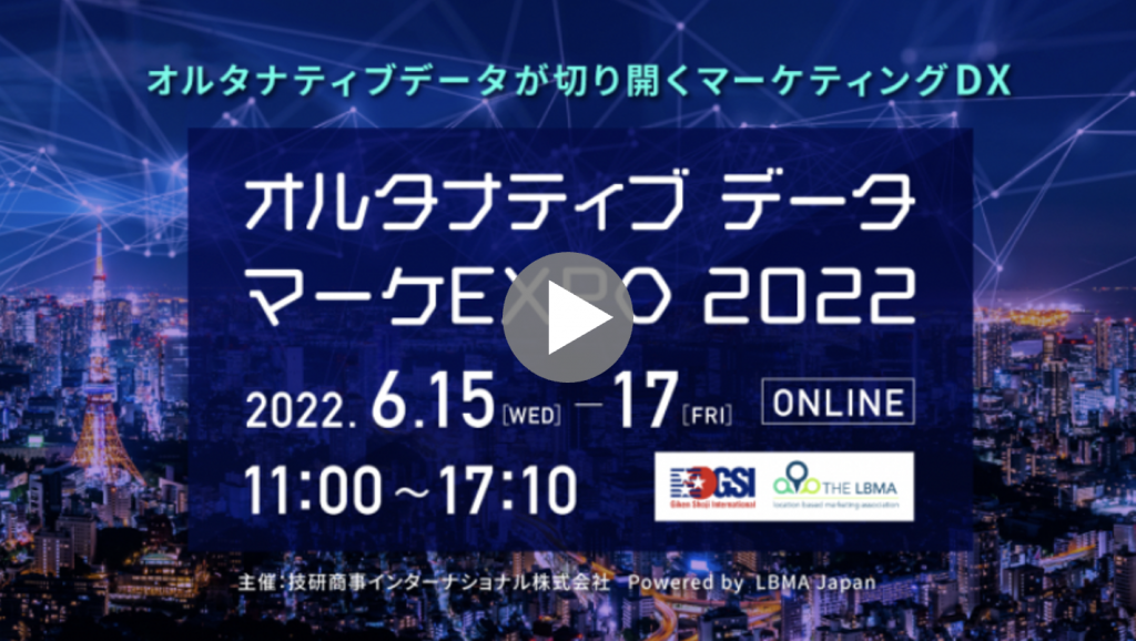 技研商事インターナショナル主催「オルタナティブデータマーケ EXPO 2022」の講演動画です。位置情報を活用した店舗戦略DXについて、事例を交えてご紹介します。